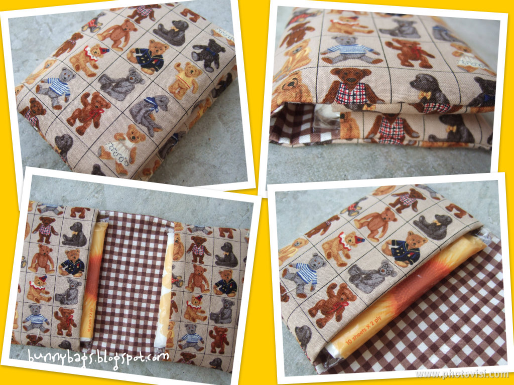 Three tissue cases and three kisslock coin purses. I flipped one of the tissue case inside out and DD says it looks ok too, what do you think? Making these made me think of chocolate milk. BTW, Shop and Save has a discount on Meiji's cocoa milk this month :-)
